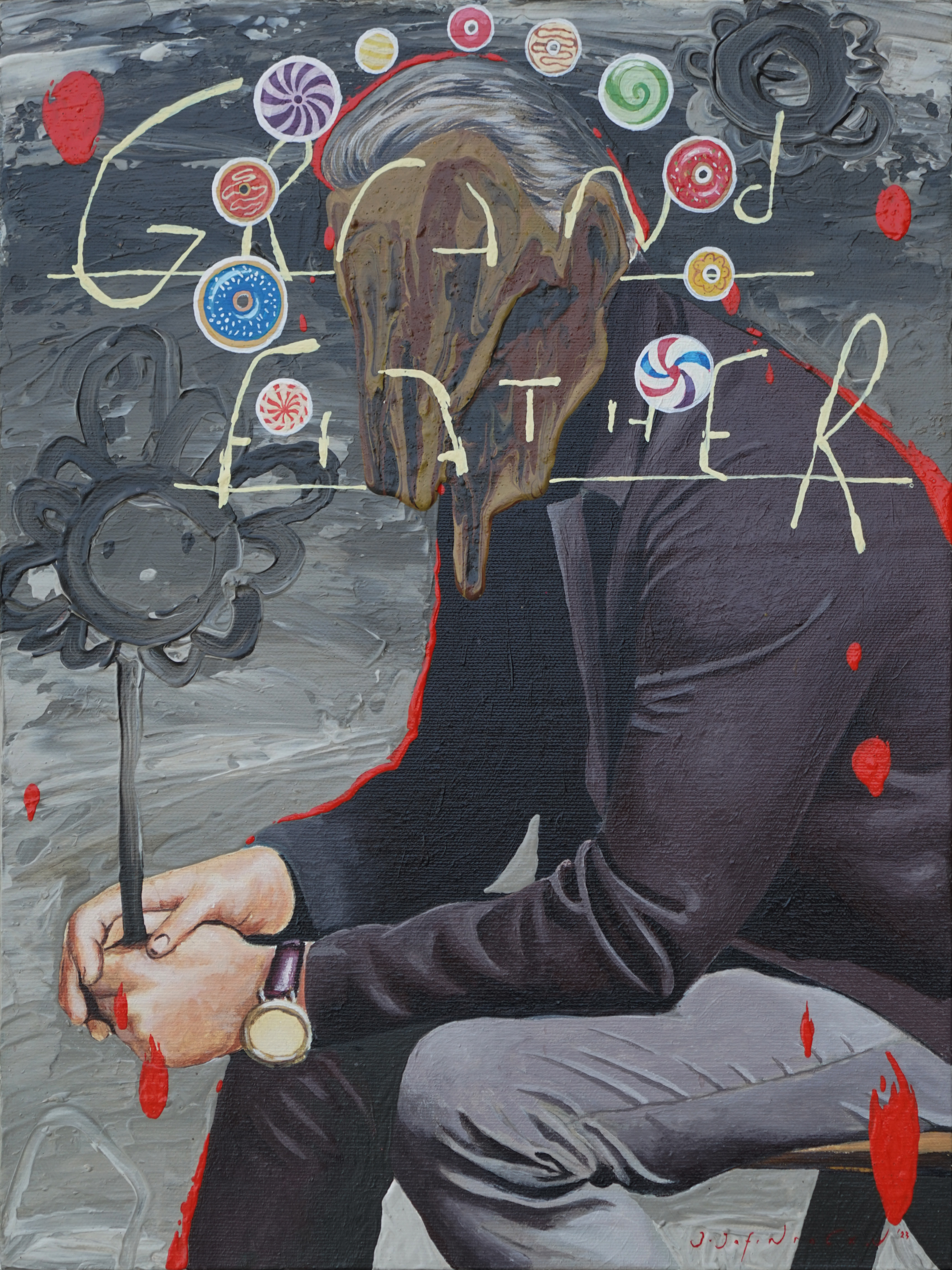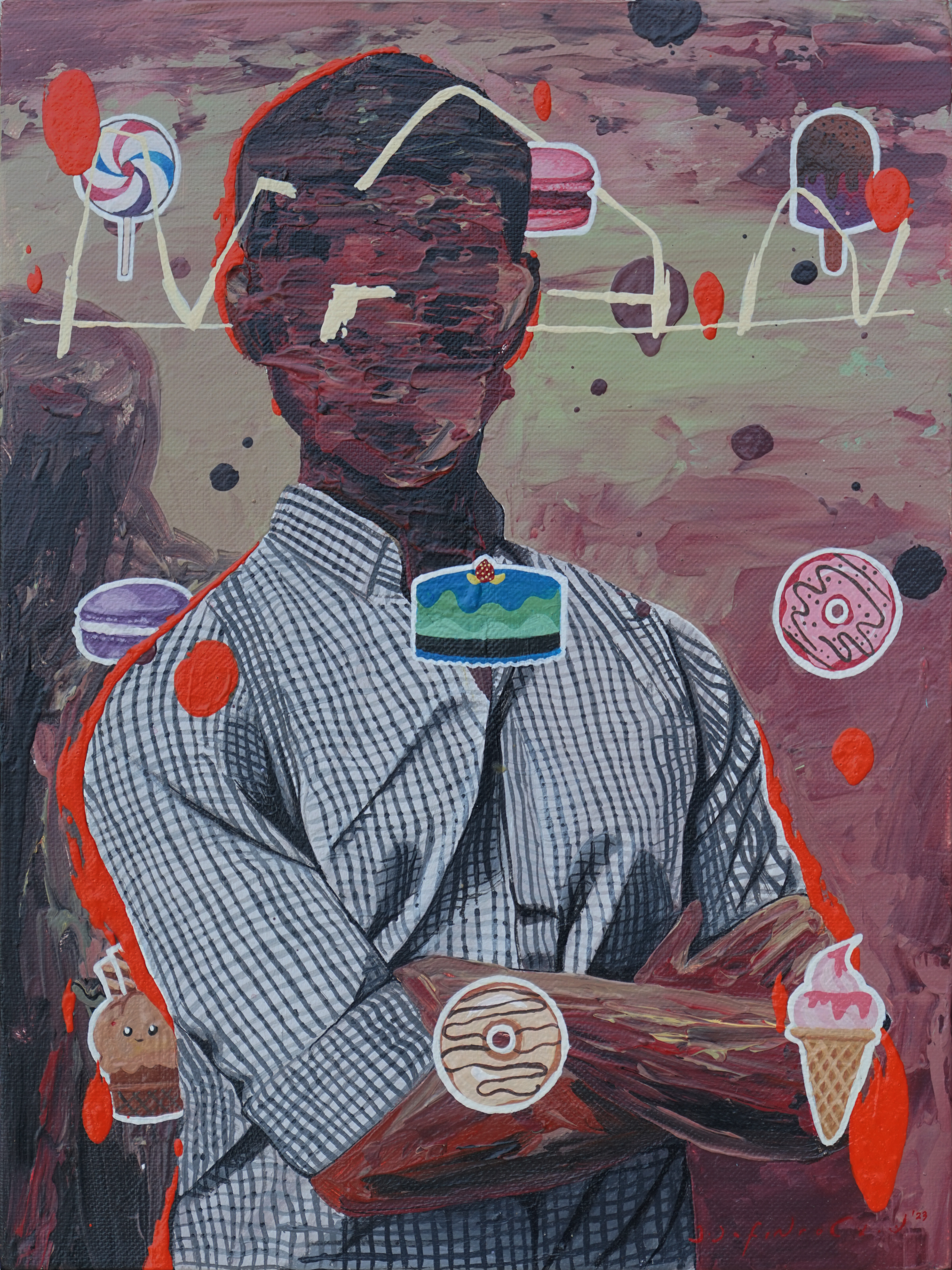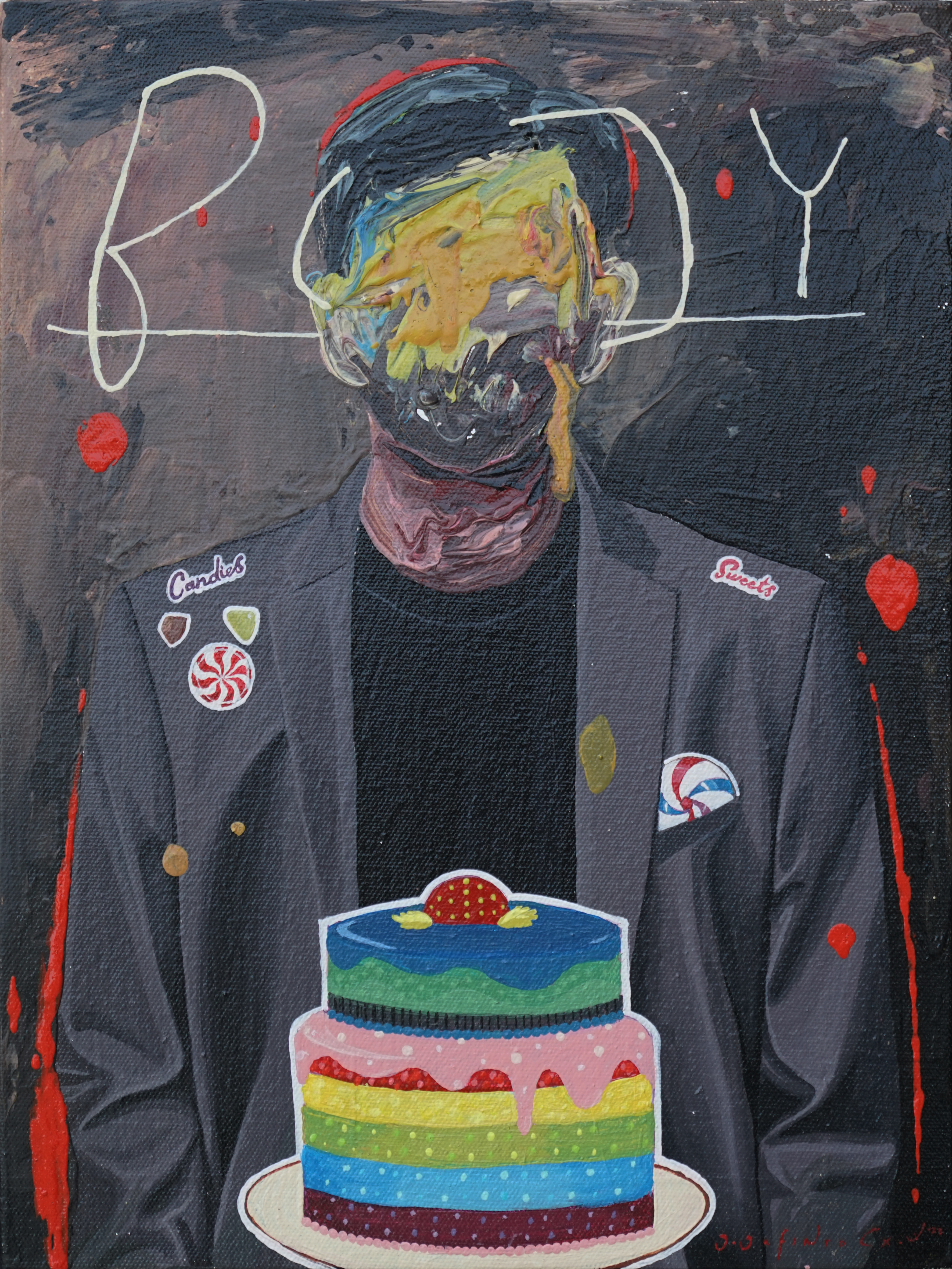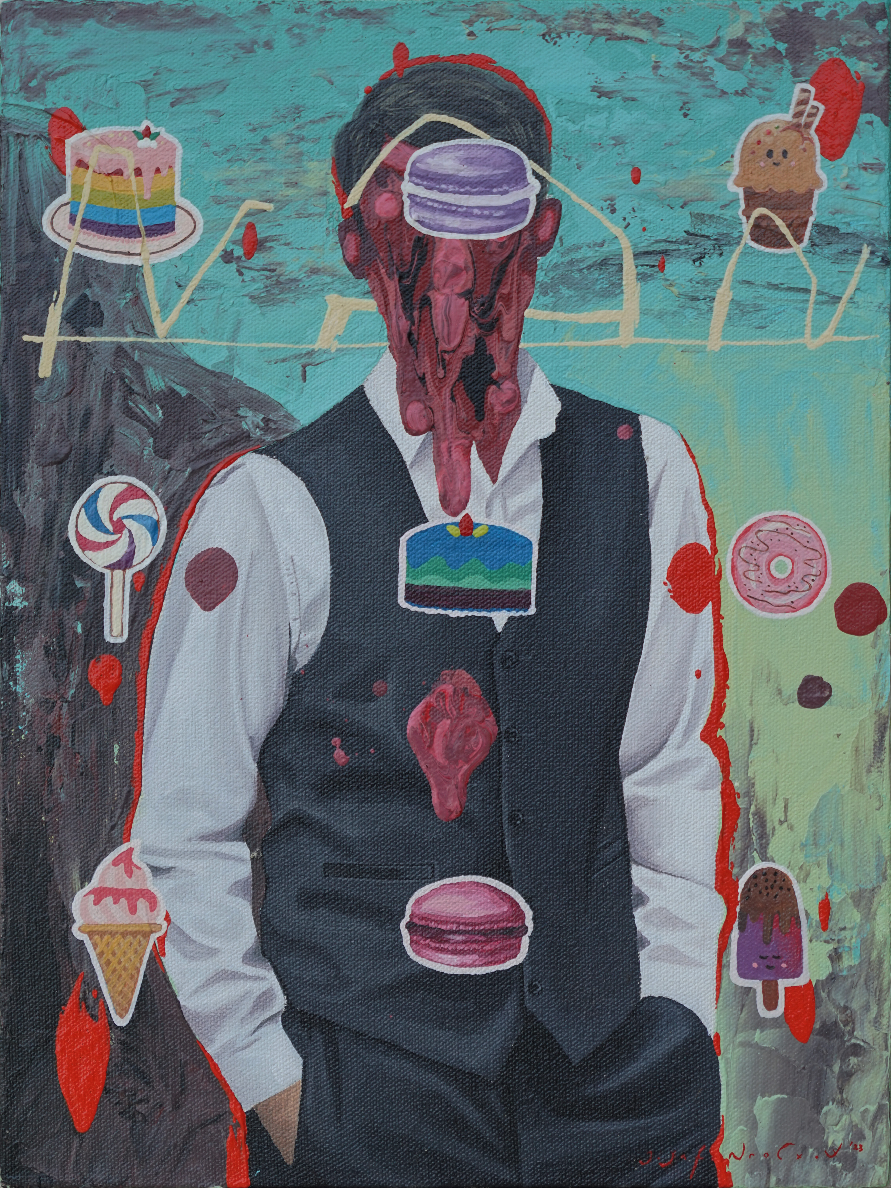 Jafin’s anxiety can be seen through his choice of colors, shapes, composition, appropriation, which offers irony, paradox, and sometimes bitterness. These kinds of works became a kind of sign of the times, created by a number of young artists in different variants, (Reminding me to the works of Zico Al Baiquni, Prabu Perdana, Lugas Sylabus, or Aurora Santika, among other names). Although the paintings are colorful, bright, soft, and sometimes sharp, they are not always joyful, but instead have a somber message.