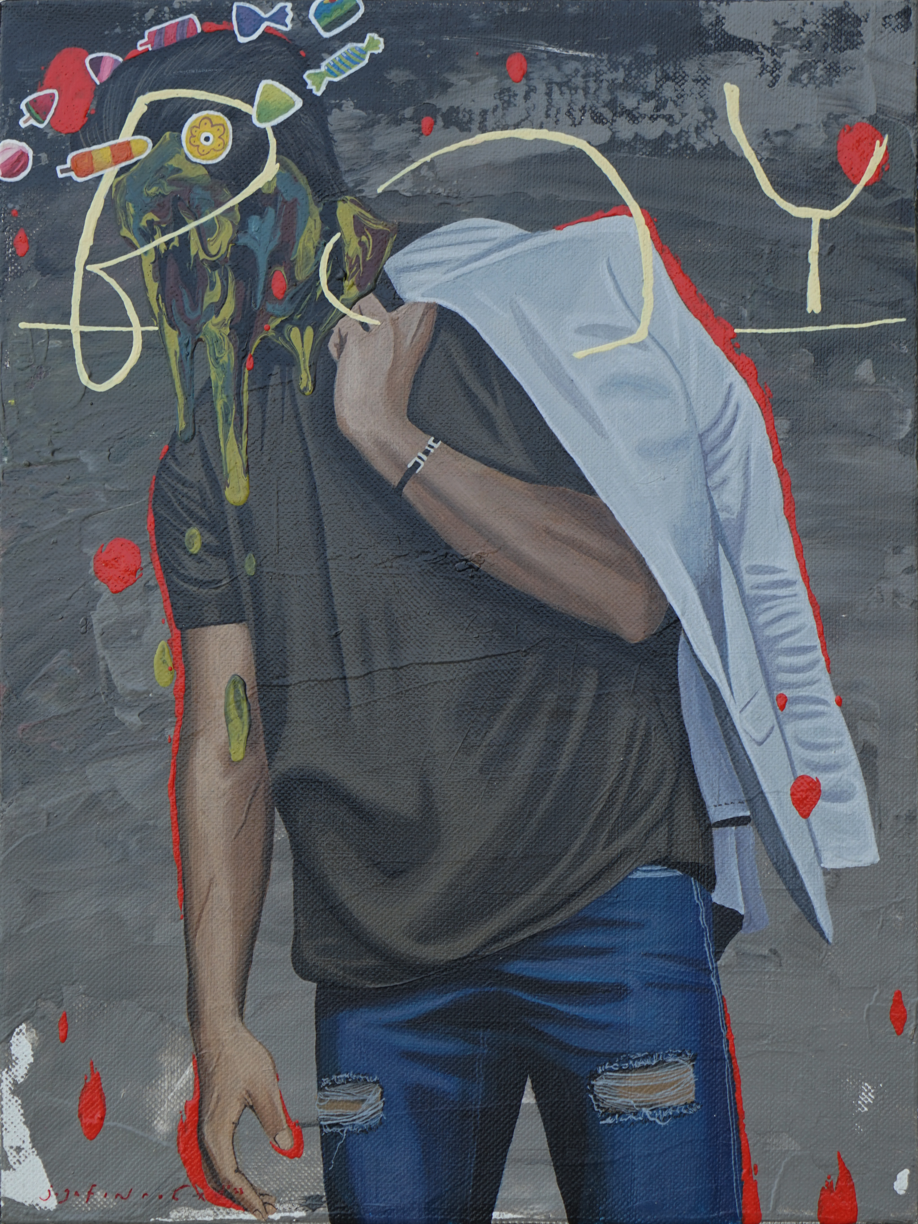 Jafin’s artworks are certainly not a formulation or answer to this complex matter. On the contrary, Jafin recorded and re-presenting it in the form (and message) related to situations that are contrasting, paradoxical, and at the same time efforts to build defense and resilience. In other words, Jafin’s paintings are visual provocation; at times it weeps, sometimes it’s hilarious, occasionally snarky, sometimes a satire, sometimes a hope.