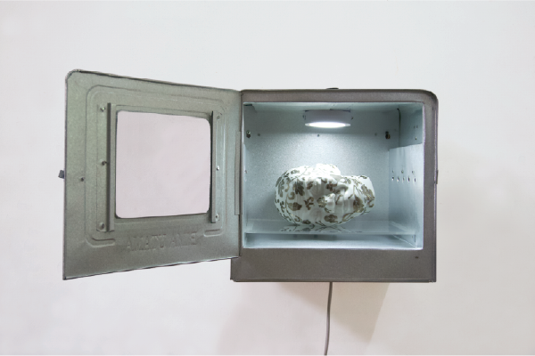 the ceramic object of a head painted with flowers from