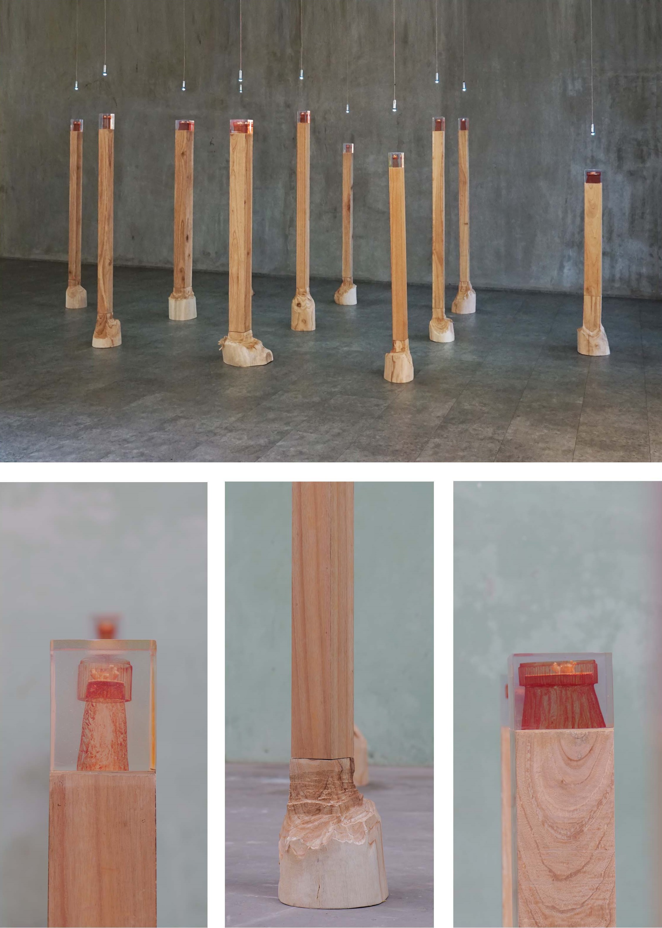 With that, the paintings (Tata Kepala and Tuturkarena—Dan Jangan Bersedih), object (Organik Oh Plastik—Menara), and installation object (Pemangkasan) made by this graduate of Institut Seni Indonesia (ISI) Yogyakarta Craft Department, came into realization for this exhibition. Apart from the use of quality materials (acrylic, resin, canvas, composite panel, mindi wood, LED light), careful scrutiny, and impeccable craftsmanship, the artworks make things, especially everyday objects such as cotton wool, candy wrappers, rubber, to appear as "objects of pleasure" that people would never get tired to look at, and would take more than just a passing glance.