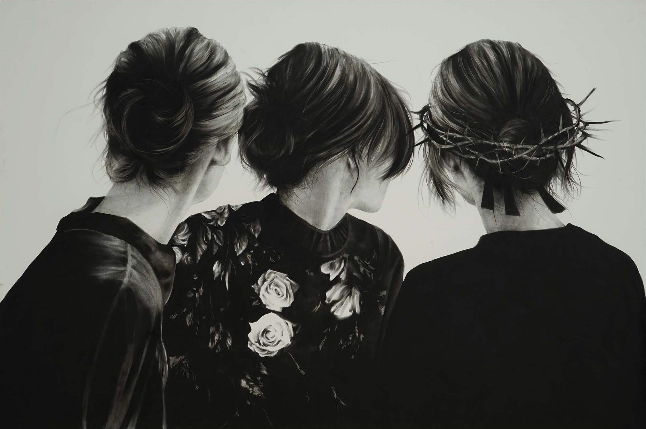 This possibility, in my opinion, exist in Pramuhendra’s visual artwork. And that means, following Boris Groys in “The Truth in Art” (2016), “there is an idealistic understanding of art” in Pramuhendra’s creative process. The issue here is how much messages the four paintings of this alumnus of Graphic Arts, Bandung Institute of Technology; Peaceful Wound (Woman in Modern World) (2023, charcoal on canvas, 200 x 150 centimeters), The Majestic Power (2024, charcoal on canvas, 200 x 150 centimeters), Lost and Hope (2024, charcoal on canvas, 200 x 200 centimeters), and Three Voices (2024, charcoal on canvas, 200 x 300 centimeters) could convey among the interests of viewers who visit The Poetic Effect exhibition.