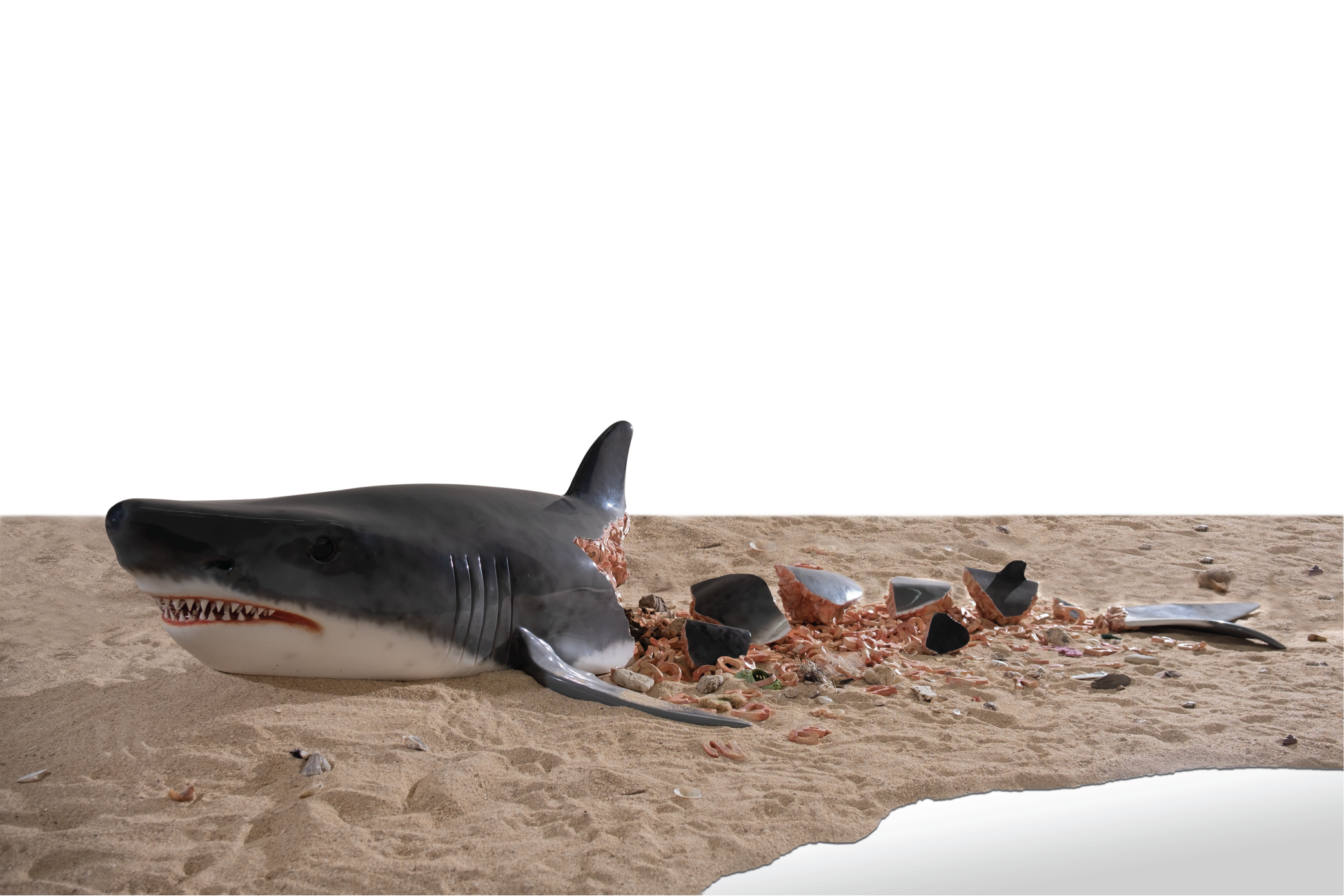 interior of the shark's body reveals not its natural organs but