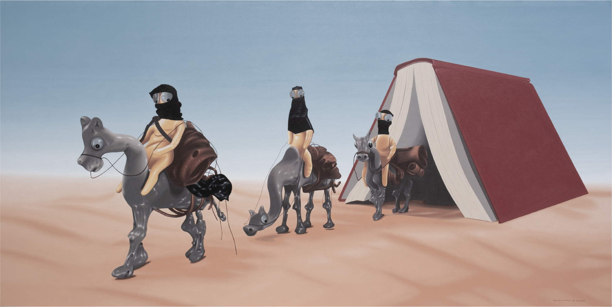 In the final painting, Samsul illustrates six human figures