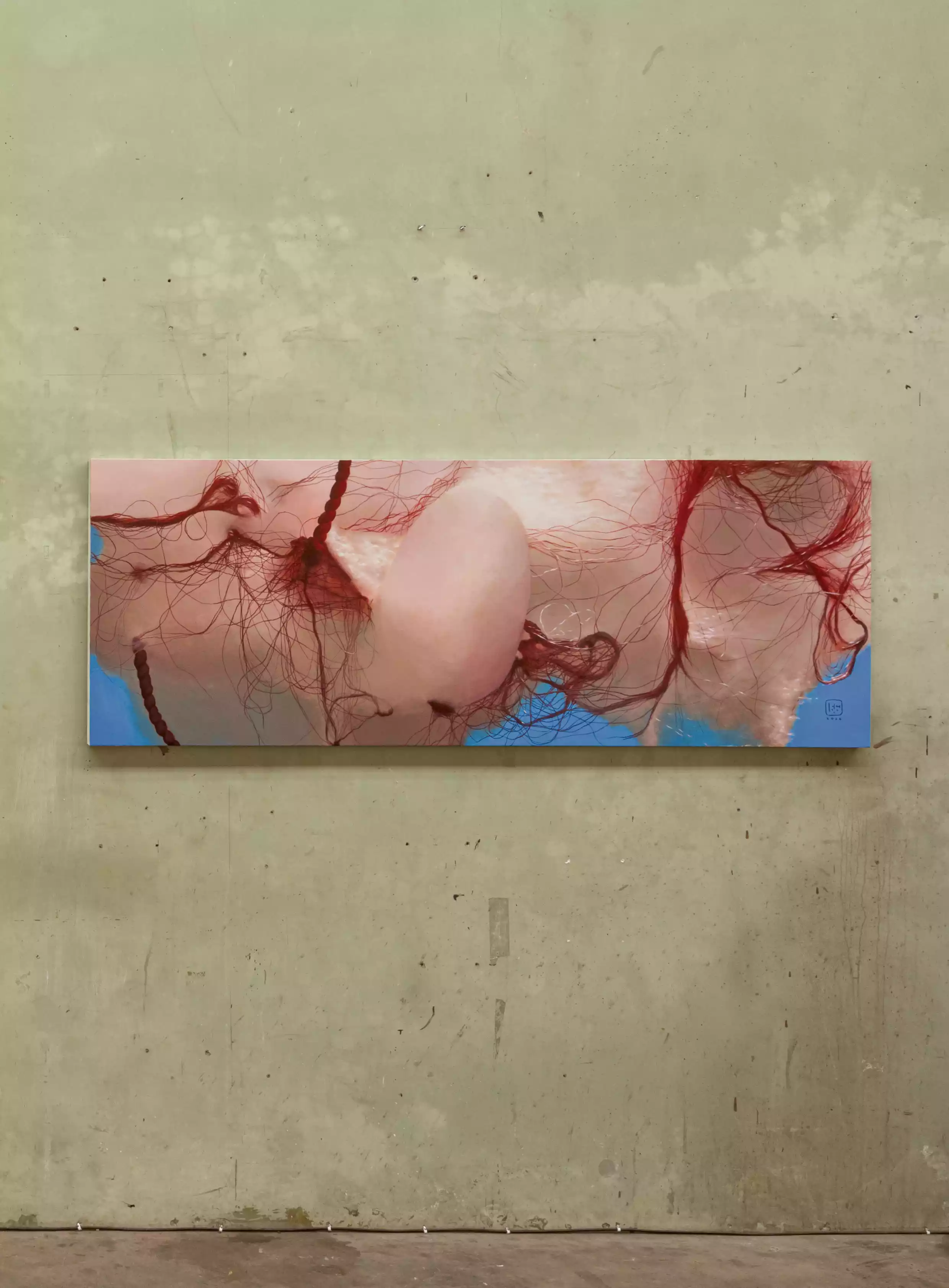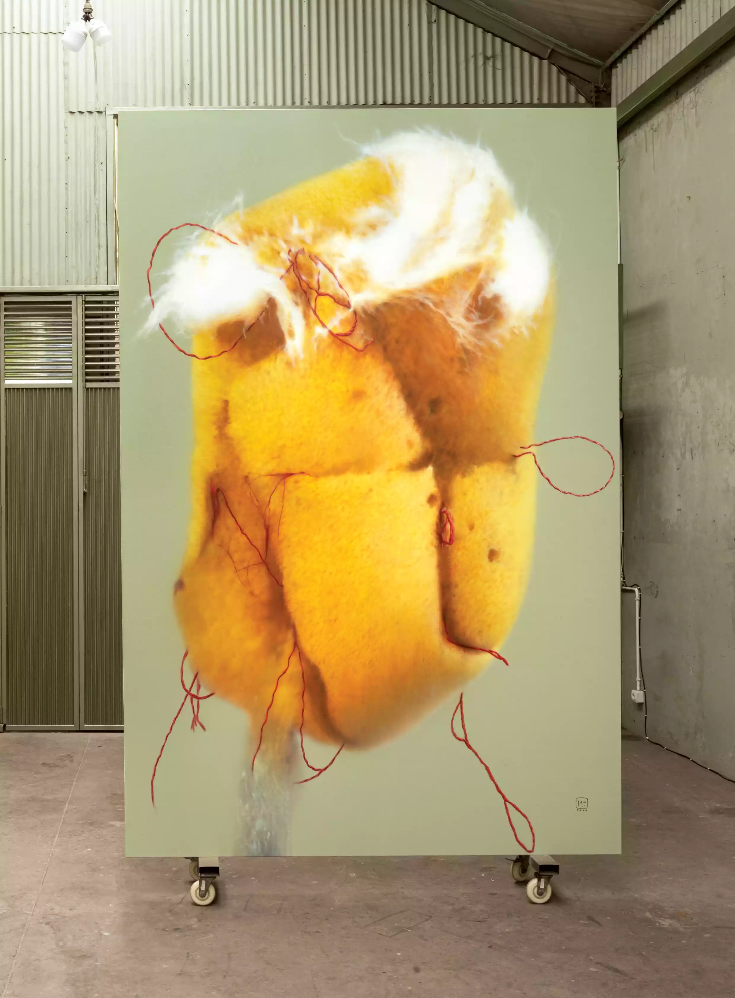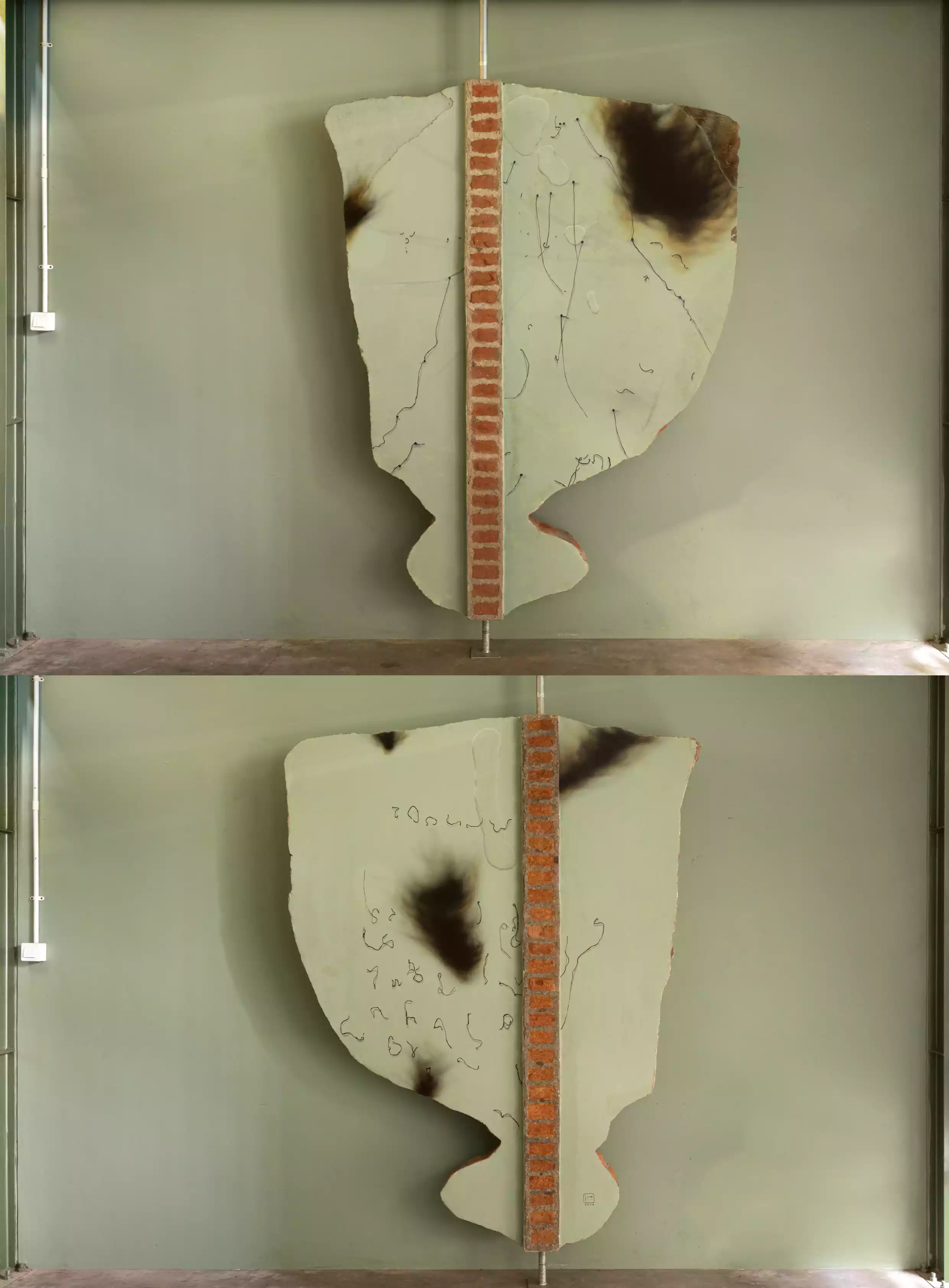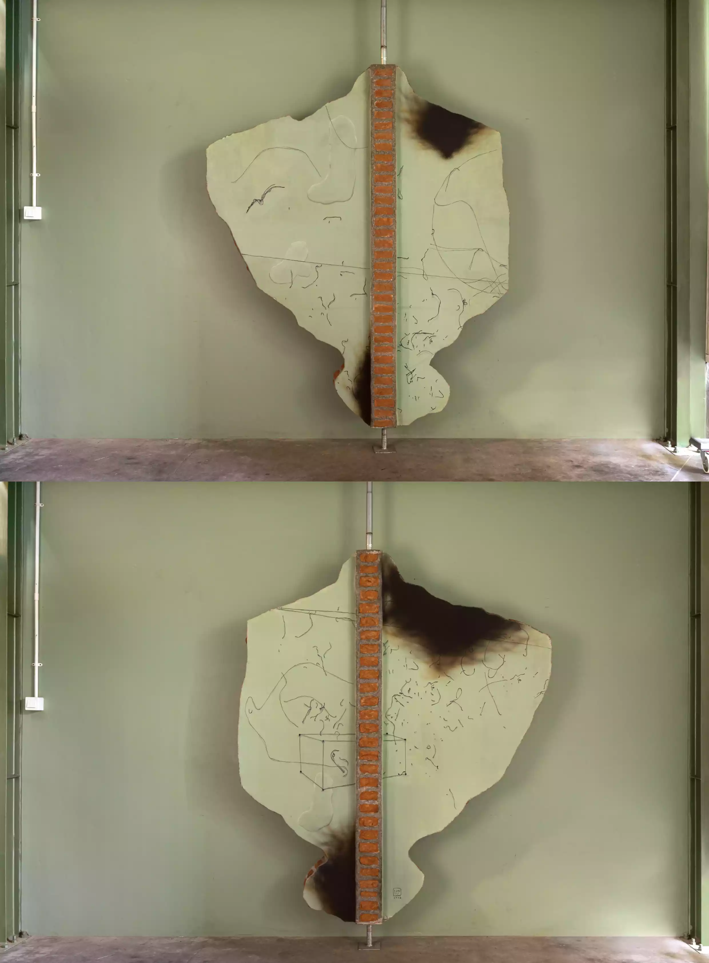 Painting on wall (sand powder, brick powder, styrofoam, waterproof, iron pipe)