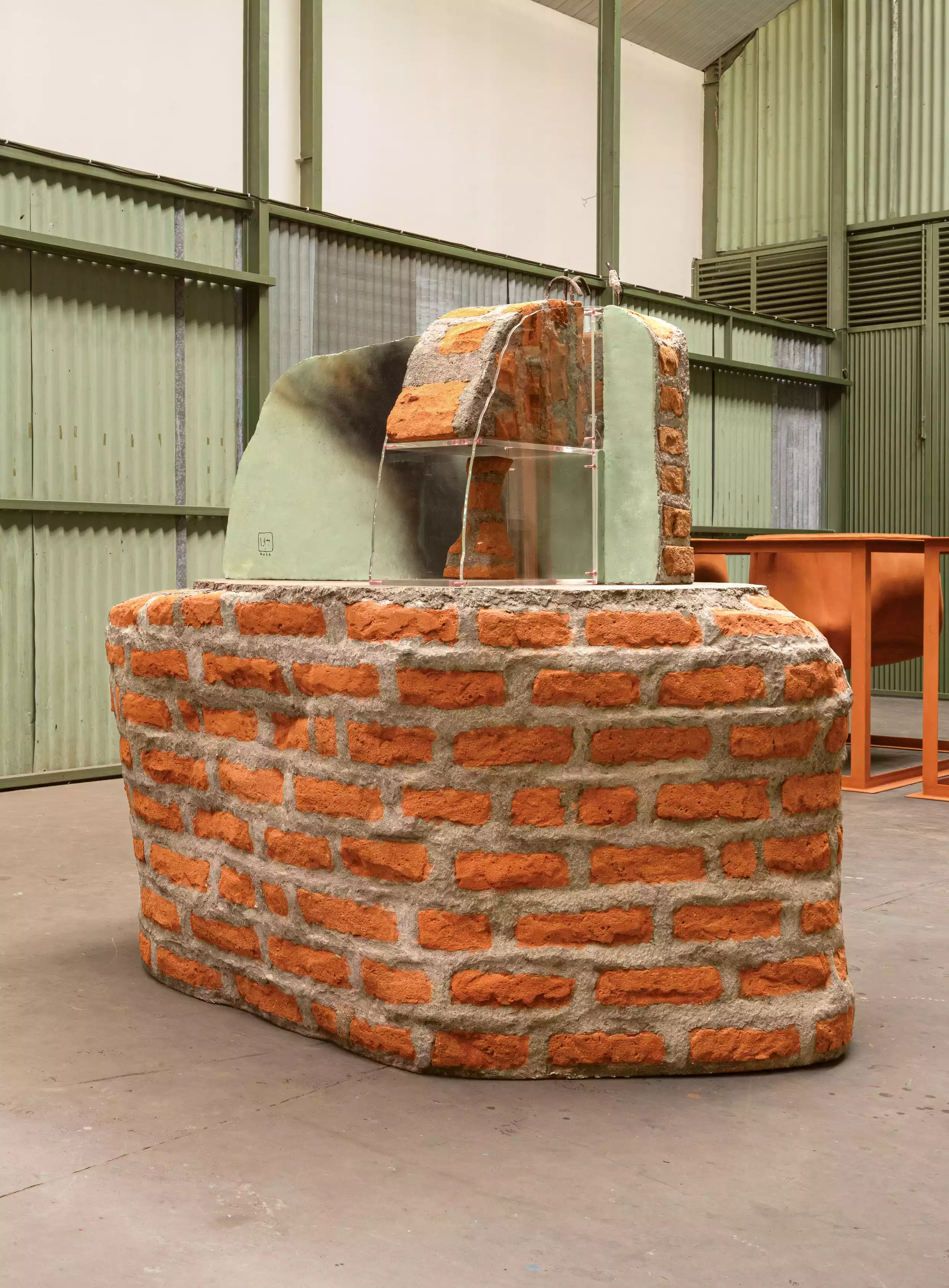 particularly steals my attention, a work measuring 204 x 125 x 100 cm made from resin fiber, brick