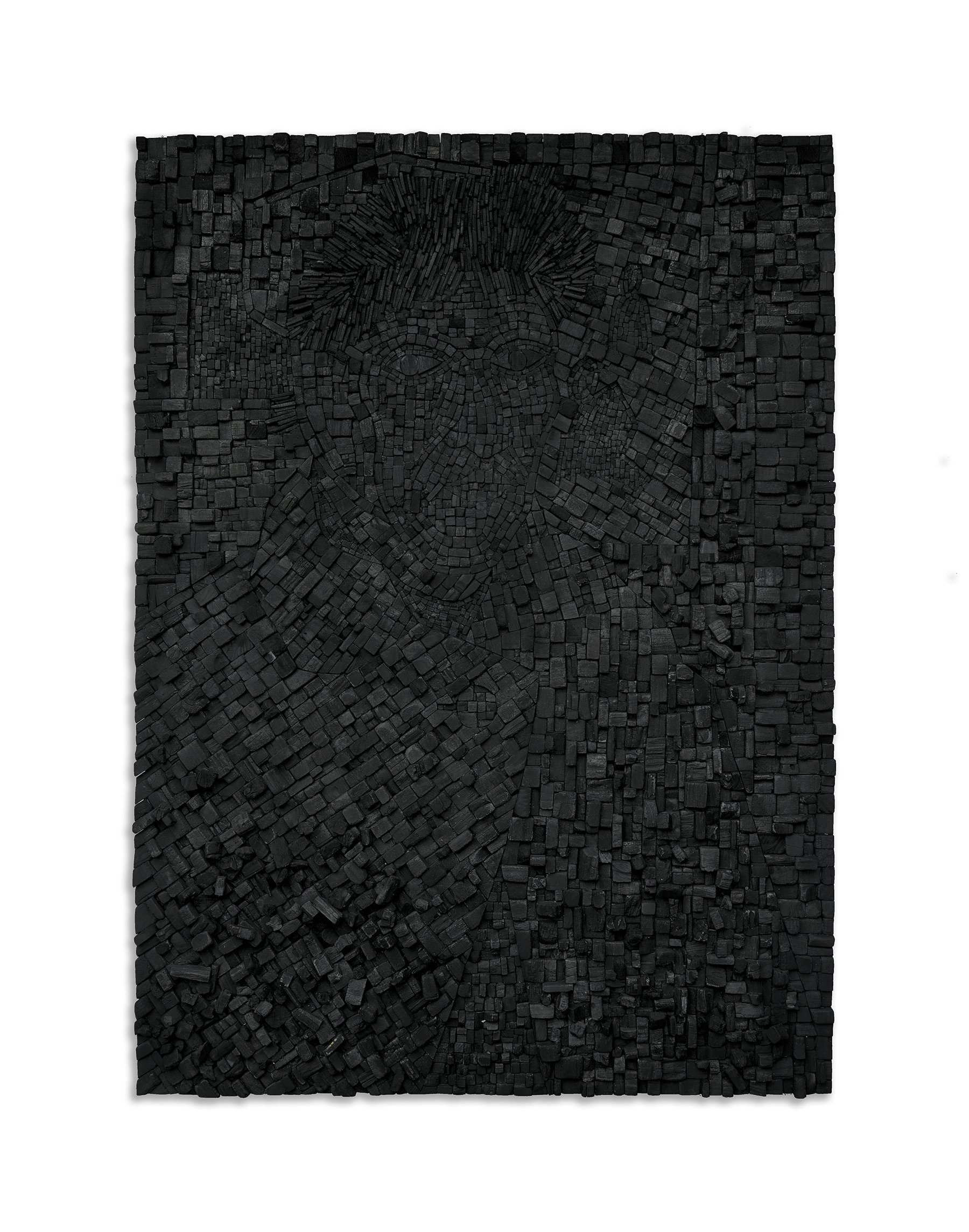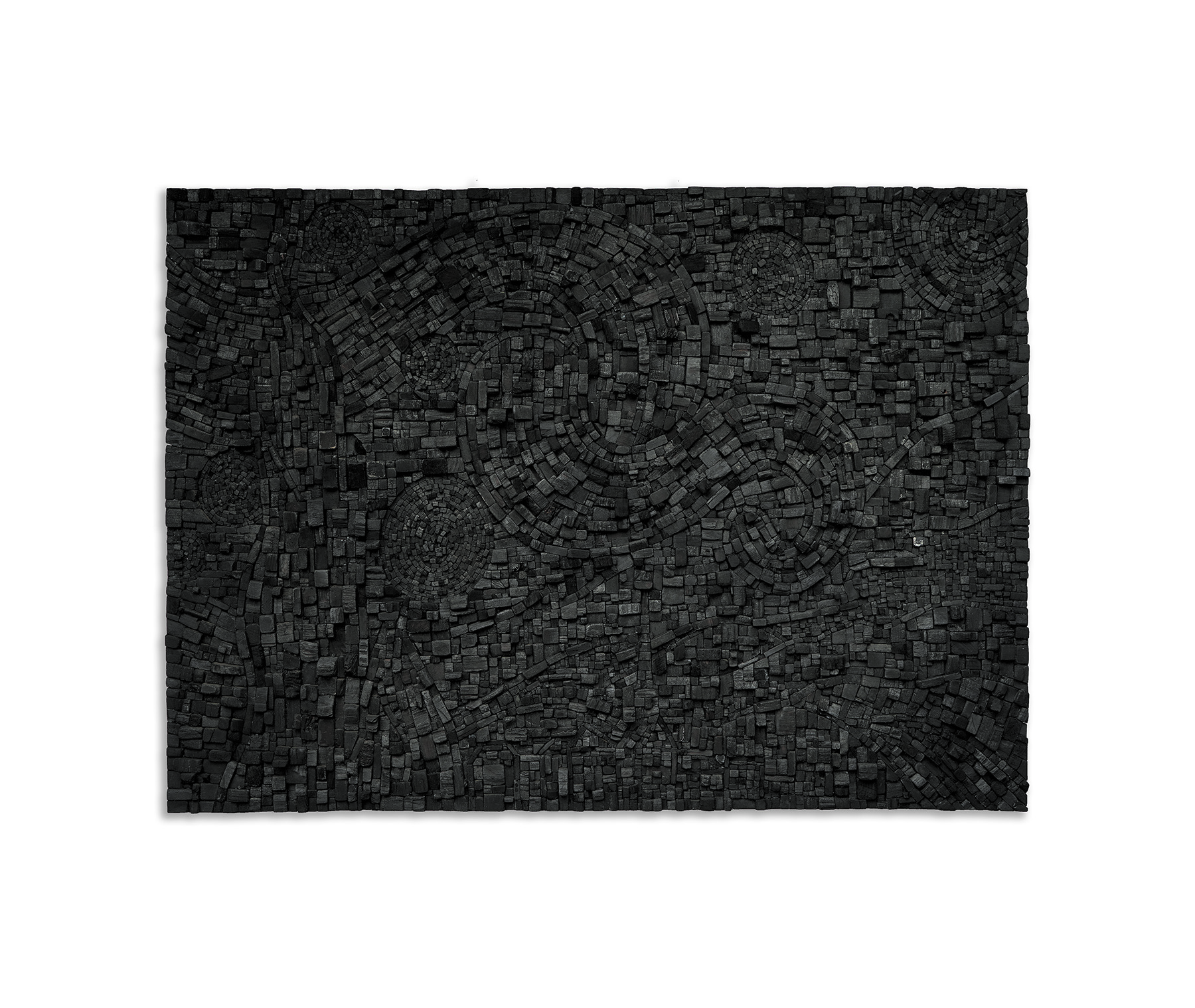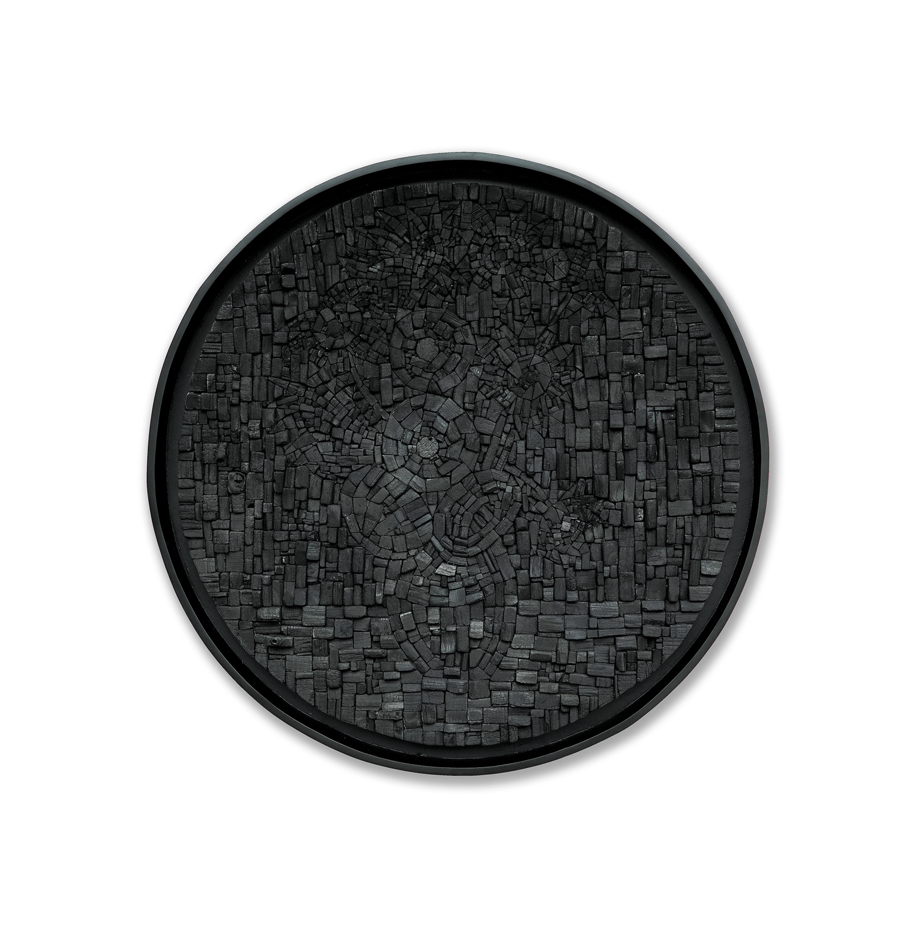 These artworks, especially Desa, which presages the Sun Flower (2018, charcoal blocks, 126 centimeter in diameter), Starry Night (2020, charcoal block, 175 x 127 centimeter), Vincent Van Gogh (2020, charcoal block, 127 x 126 centimeter), La Giocondo (2021, charcoal block, 26 centimeter in diameter), Femme au et Col en Chapeau Fourrure (2022, charcoal block, 126 x 126 centimeter), Self Portrait by Van Gogh (2022, charcoal block, 126 x 126 centimeter), Buste de Femme au Chapeau Bleu (2022, charcoal block, 128 x 186 centimeter), Bust of a Woman (2022, charcoal block, 175 x 128 centimeter), and Target (2022, charcoal block, 126 centimeter in diameter), are presented in this Mengarang exhibition.