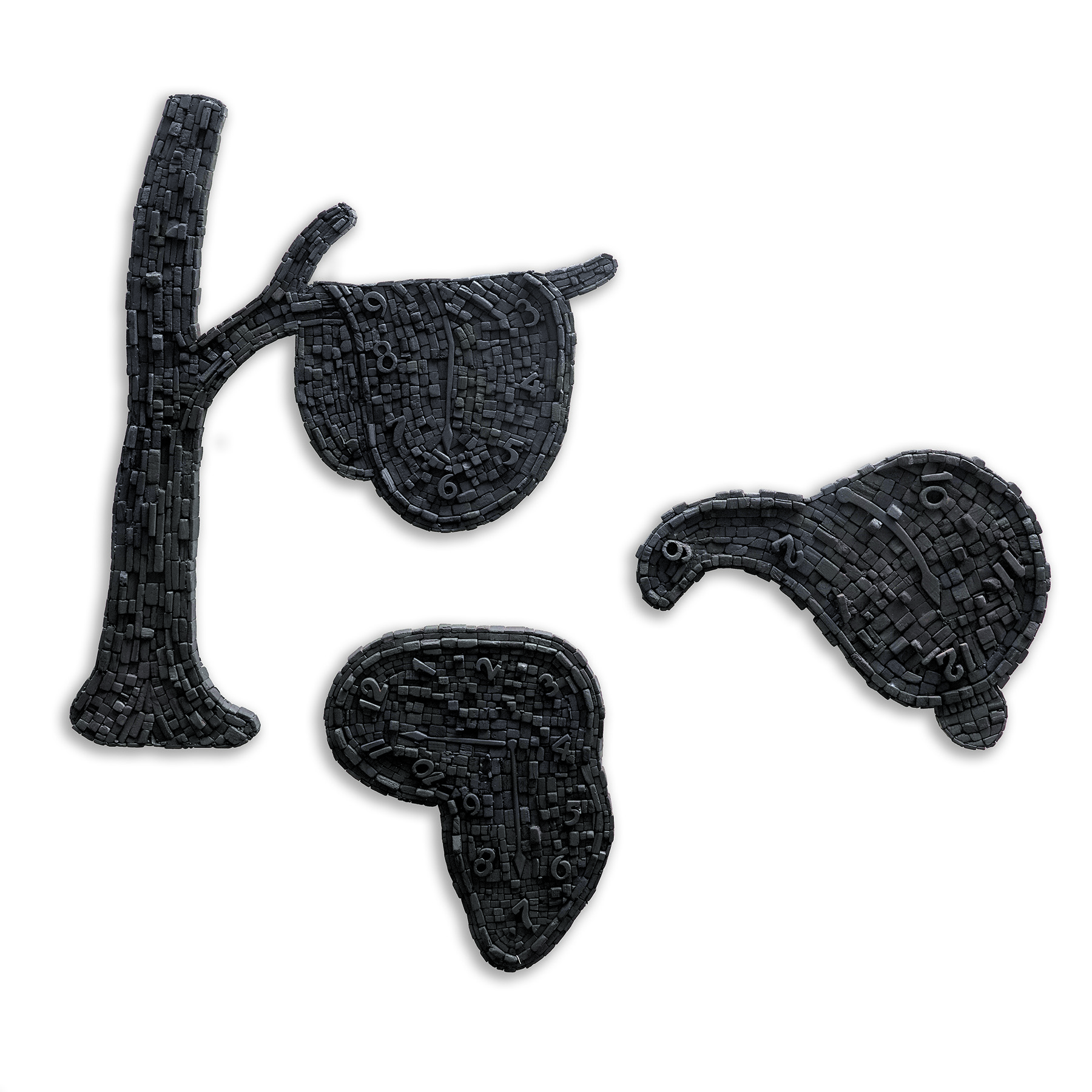 Meanwhile, Bicycle that was displayed in Artjog 2020 has its variation in The Persistence of Memory (2020, charcoal block, 180 x 170 centimeter) that took the title and appropriate from the visual principle—to be precise, the melting clock—from the painting The Persistence of Memory by Salvador Dali.