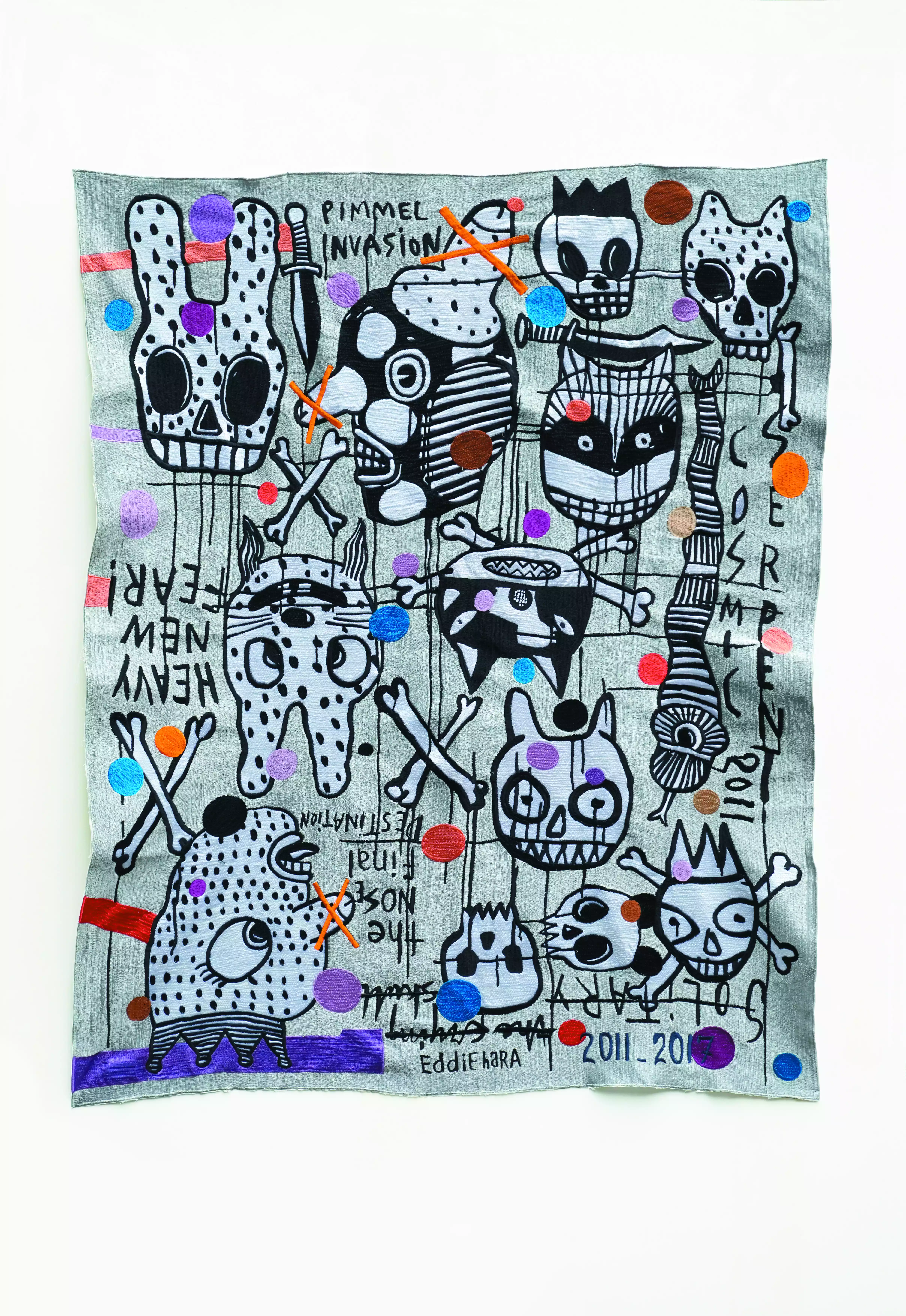 Digital print, acrylic and handmade embroidery on canvas